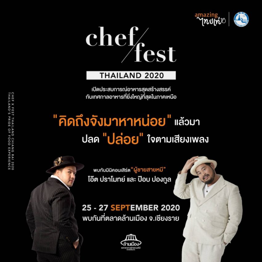 เทศกาลอาหารสุดยิ่งใหญ่ พร้อมกิจกรรมสุดพิเศษ กับงาน Chef/Fest Thailand 2020 วันที่ 25-27 กันยายน 2563 ณ ตลาดล้านเมือง จ.เชียงราย สนับสนุนการจัดงานโดย ททท. การท่องเที่ยวแห่งประเทศไทย