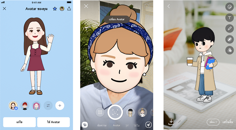 ตอนนี้ใครๆก็ใช้การ์ตูนแทนตัวเองกันแล้ว LINE อดใจไม่ไหว ขอปล่อยฟีเจอร์ใหม่ล่าสุด “Avatar” ที่มาเหนือชั้นด้วยลูกเล่นเคลื่อนไหวได้ ผ่านการใช้เทคโนโลยี AR นำภาพจริงของผู้ใช้งานเปลี่ยนเป็นภาพการ์ตูนเสมือนจริง ใส่ลูกเล่นจัดจ้านให้ความรู้สึกตื่นเต้นและสนุกในการสื่อสารมากขึ้น พร้อมให้ใช้ ให้แชรบนโซเชียลมีเดียอื่นได้อีกด้วย ยกระดับความสุขในการสื่อสาร พร้อมให้ผู้ใช้งานค่อยๆ เรียนรู้ ซึมซับเทคโนโลยี AR ว่าไม่ใช่แค่เกมหรือสื่อบันเทิงไกลตัวอีกต่อไป แต่กำลังเข้ามาใกล้และปรับใช้สร้างสีสันในชีวิตประจำวันของเราทุกคนได้ ไม่ยากเย็น