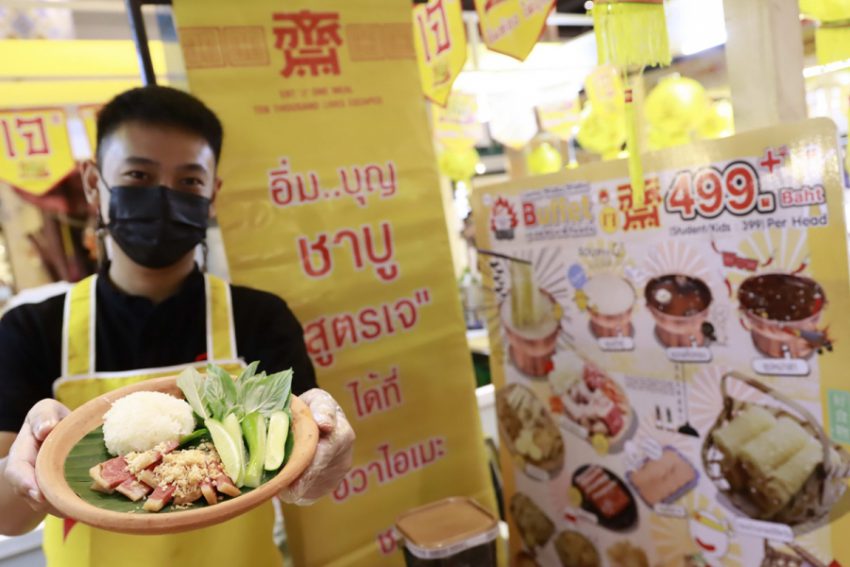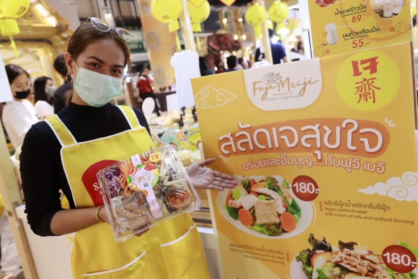 ไอคอนสยาม ร่วมกับ เมืองสุขสยาม จัดมหาปรากฏการณ์เทศกาลกินเจมหากุศล “อิ่มบุญ อิ่มเจ 4 ภาค” สุขภาพดี เสริมบารมี วิถีบุญ ระหว่างวันที่ 16- 25 ตุลาคมนี้ โดยคัดสรรสารพันเมนูเจสุดพิเศษจากร้านอาหารเจต้นตำรับทั้งคาวหวานทั่วไทยทั้ง 4 ภาค ร่วมด้วย ร้านอาหารชื่อดังและภัตตาคารชั้นนำทั่วประเทศมารวมพลภายในงานอย่างครบครัน ณ ลานเมือง 1 ชั้น G เมืองสุขสยาม โดยได้รับเกียรติจากคุณชาติชาย กุละนำพล ผู้อำนวยการเขตคลองสาน เป็นประธานเปิดงาน และผู้บริหารโครงการสุขสยาม คุณชยะพงส์ นะวิโรจน์ ร่วมด้วยผู้สนับสนุนการจัดงาน ตลอดจนประชาชนที่มาร่วมเปิดเทศกาลกินเจ ร่วมสวดเทพมารีจีมหาโพธิสัตว์ และ กิ้วอ้วงฮุคโจ้ว 9 เทพแห่งเทศกาลกินเจ บริเวณลานแสนสุข เพื่อความเป็นสิริมงคล จากนั้นจึงเป็นการสาธิตทำอาหาร Cooking Show เมนูมงคล “ฉู่ฉี่เต้าหู้เห็ดหอม” โดย เชฟพลอย-ฐาติกานต์ ตัณฑจินนะ Top Chef Thailand ที่ปรับสูตรให้เมนูฉู่ฉี่อาหารไทยเลื่องชื่อให้เป็นเมนูมงคลที่น่าลิ้มลอง