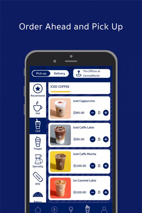 - Online Ordering การเลือกสั่งเมนูเครื่องดื่ม, เมล็ดกาแฟ, เบเกอรี่ และสินค้าอื่นๆ ล่วงหน้าโดยไม่ต้องรอคิว และสามารถระบุเวลารับสินค้าได้