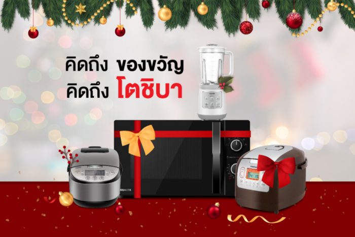 โตชิบา นำเสนอไอเดียของขวัญแด่คนพิเศษ ตลอดเทศกาลแห่งการเฉลิมฉลอง ด้วยผลิตภัณฑ์เครื่องใช้ไฟฟ้า จากโตชิบา แทนความหมาย ห่วงใย ใส่ใจ จากผู้ให้สู่ผู้รับ อาทิ ตู้เย็น (ขอให้อยู่เย็นเป็นสุข), หม้อหุงข้าว (ขอให้อิ่มสุข), ไมโครเวฟ (ขอให้ครอบครัวอบอุ่น) เครื่องฟอกอากาศ (ขอให้มีแต่ความสดชื่นสดใส) เป็นต้น โดยสามารถเข้าไปรับชมวีดิโอไอเดียตกแต่งของขวัญได้ทาง www.toshiba.co.th และพิเศษสุด เพื่อเป็นของขวัญตอบแทนลูกค้าทุกท่านส่งท้ายปี กับกิจกรรมแจกตู้เย็น ไซด์บายไซด์ มูลค่า 32,990 บาท จำนวน 10 รางวัล มูลค่ารวม 329,990 บาท สามารถดูรายละเอียดได้ทาง www.facebook.com/ToshibaSociety