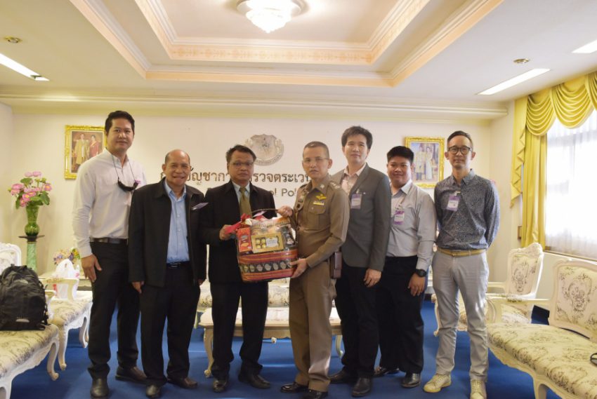 พลตำรวจโทวิชิต ปักษาผู้บัญชาการ ตำรวจตระเวนชายแดน (ผบช.ตชด.) (คนที่สี่จากซ้าย) ให้คณะอาจารย์โรงเรียนสามควายเผือกอำเภอเมือง จังหวัดนครปฐม