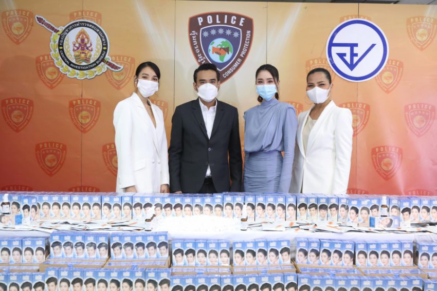 แพท-ณปภา พร้อมด้วยทนายเจมส์ ร่วมแถลงข่าว ปคบ.จับล็อตใหญ่ เซรั่ม ดร.จิล ปลอม มูลค่าความเสียหายกว่าห้าล้านบาท
