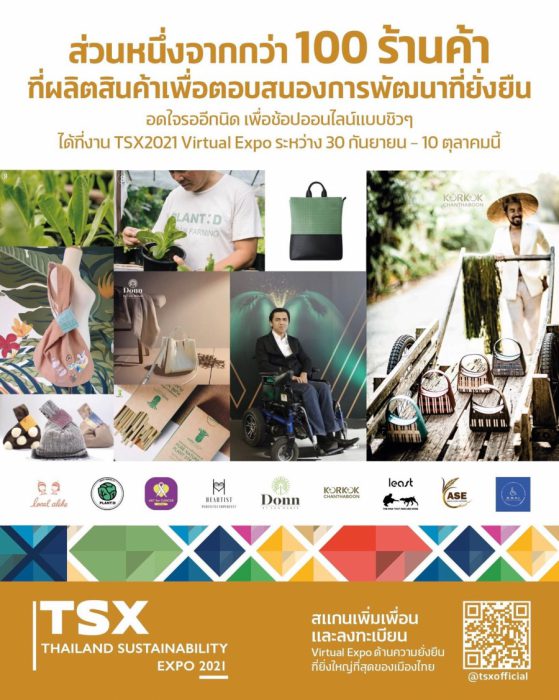 “Thailand Sustainability Expo 2021 (TSX)” แพลตฟอร์มของพลังร่วมขององค์กรด้านความยั่งยืนครั้งแรกที่ยิ่งใหญ่ของประเทศไทย จัดต่อเนื่องเป็นปีที่ 2 โดยปีนี้จัดในรูปแบบการจัดนิทรรศการออนไลน์แบบเสมือนจริง (Virtual Expo) ภายใต้แนวคิด “พอเพียง ยั่งยืน เพื่อโลก” (Sufficiency for Sustainability) นับเป็นมหกรรมด้านความยั่งยืนที่ยิ่งใหญ่ของเมืองไทย ที่มีการรวมตัวของภาคีเครือข่ายด้านความยั่งยืนจำนวนมากที่สุดจากการผสานความร่วมมือครั้งสำคัญของพันธมิตรที่เป็นองค์กรต้นแบบความยั่งยืนระดับโลกของประเทศไทยที่รับที่ได้รับการคัดเลือกเป็น Word Industry leader ในแต่ละสาขาอุตสาหกรรม Dow Jones Sustainability Indices หรือ DJSI นำโดย บริษัท ไทยเบฟเวอเรจ จำกัด (มหาชน) บริษัท พีทีที โกลบอล เคมิคอล จำกัด (มหาชน) และ บริษัท ไทยยูเนี่ยน กรุ๊ป จำกัด (มหาชน) ร่วมด้วย บริษัท เฟรเซอร์ พร็อพเพอตี้ (ประเทศไทย) จำกัด ธนาคารกรุงเทพ จำกัด (มหาชน) ธนาคารกสิกรไทย จำกัด (มหาชน) บริษัท เจริญโภคภัณฑ์อาหาร จำกัด (มหาชน) บริษัทปูนซีเมนต์ไทย จำกัด (มหาชน) บริษัท ไทยเบฟเวอเรจแคน จำกัด บริษัท อินโดรามา เวนเจอร์ส จำกัด (มหาชน) และ อีกหลายองค์กรชั้นนำในเครือข่าย TSCN (Thailand Supply Chain Network)