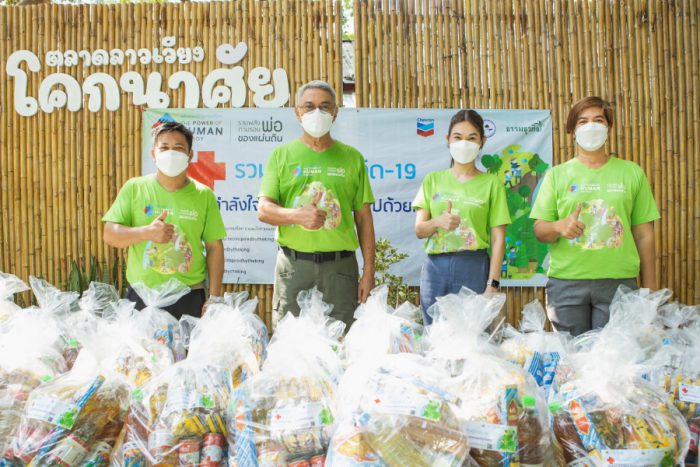 นางสาวพรสุรีย์ กอนันทา ผู้จัดการฝ่ายกิจการองค์กร บริษัท เชฟรอนประเทศไทยสำรวจและผลิต จำกัด กล่าวว่า “นับตั้งแต่เกิดวิกฤตการแพร่ระบาดของโรคโควิด-19 เมื่อปีที่ผ่านมา โครงการตามรอยพ่อฯ ได้เดินหน้าจัดกิจกรรมเพื่อร่วมเป็นส่วนหนึ่งการรับมือวิกฤตครั้งนี้ โดยเฉพาะอย่างยิ่งการให้ข้อมูลความรู้เกี่ยวกับศาสตร์พระราชาและหลักปรัชญาเศรษฐกิจพอเพียงแก่ชาวไทยบนเว็บไซต์และเฟซบุ๊คเพจของโครงการตามรอยพ่อฯ อย่างต่อเนื่อง เพื่อสร้างแรงบันดาลใจสู่การลงมือปฏิบัติ อันจะเป็นเกราะป้องกันจากวิกฤตโควิด-19 และวิกฤตอื่นๆ ได้อย่างยั่งยืน ตลอดจนจัดกิจกรรมต่างๆ เพื่อช่วยเหลือผู้ที่ได้รับผลกระทบจากวิกฤตโควิด-19 โดยมีแคมเปญ ‘รวมพลังสู้โควิด-19’ เป็นกิจกรรมล่าสุด ซึ่งโครงการตามรอยพ่อฯ ได้ทำงานร่วมกับศูนย์ช่วยโควิด-19 ของเครือข่ายกสิกรรมธรรมชาติรวม 19 แห่งทั่วประเทศจัดคาราวาน ‘รวมพลังสู้โควิด-19’ แจกตะกร้าปันสุข ชุดต้มและน้ำสมุนไพร 7 นางฟ้า และกล่องกรีนบ็อกซ์ (Home Isolation Green Box) ซึ่งเป็นชุดดูแลตัวเองสำหรับผู้ป่วยสีเขียวที่พักรักษาตัวที่บ้านไปเป็นจำนวนมาก