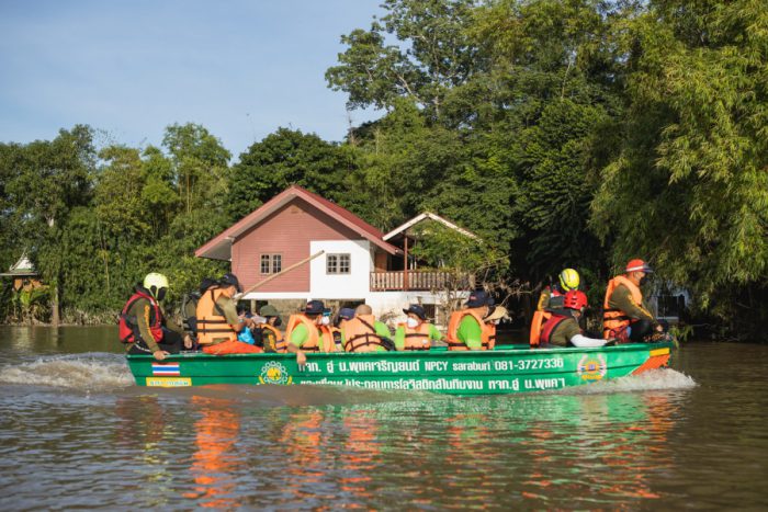 ด้าน นายบุญล้อม เต้าแก้ว ผู้อำนวยการศูนย์เรียนรู้เศรษฐกิจพอเพียง สวนล้อมศรีรินทร์ กล่าวถึงรายละเอียดของพื้นที่ลุ่มน้ำป่าสักในจังหวัดสระบุรีที่ได้รับผลกระทบจากน้ำท่วมว่า “ผมมีโอกาสได้ทำงานครั้งแรกกับอาจารย์ยักษ์เมื่อครั้งมหาอุทกภัย ปี 2554 ที่เกิดน้ำท่วมใหญ่ทั่วประเทศ จึงได้นำสิ่งที่เรียนรู้จากประสบการณ์การทำงานกับอาจารย์ยักษ์มาใช้ในการรับมือกับอุทกภัยในครั้งนี้ ทั้งการวางแผน การจัดทัพ การวางงาน ใครมีหน้าที่อะไร โดยต้องประเมินสถานการณ์พื้นที่ที่ได้รับผลกระทบให้ได้ก่อน แล้วจัดตั้งศูนย์ประสานงานความช่วยเหลือขึ้นบนพื้นที่ของเครือข่ายที่ไม่ได้รับผลกระทบและอยู่ใกล้กับพื้นที่น้ำท่วม จากนั้นให้เครือข่ายที่อยู่ในจุดที่น้ำท่วม ประเมินสถานการณ์ในพื้นที่ที่ตัวเองอยู่ว่า น้ำท่วมสูงแค่ไหน มีกี่ครัวเรือนที่ได้รับผลกระทบ อพยพไปอยู่ตรงจุดไหน วิกฤตที่เจอมีอะไรบ้าง และคนที่ออกมาแล้วมีกี่คน ผู้ชายกี่คน ผู้หญิงกี่คน เด็กกี่คน มีคนป่วยไหม เพื่อที่เราจะได้เตรียมความช่วยเหลือเข้าไปอย่างเหมาะสม หากจะต้องมีการขนย้ายอย่างเร่งด่วน เราก็จะประสานหน่วยงานเพื่อจะเอาเรือเข้าไปรับออกมา ณ พื้นที่อพยพชั่วคราวที่เตรียมไว้