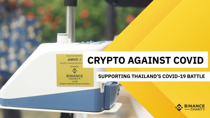 “Crypto Against COVID” เป็นโครงการที่ Binance Charity ได้ร่วมมือกับสภากาชาดไทยเพื่อส่งมอบเครื่องให้อากาศผสมออกซิเจนด้วยอัตราการไหลสูง AIRVO 2 จำนวน 10 เครื่องให้กับโรงพยาบาลจุฬาลงกรณ์ มูลค่ารวมกว่า 2,000,000 บาท โดยเครื่องมือแพทย์เหล่านี้เป็นทรัพยากรสำคัญในการรักษาและช่วยเหลือผู้ป่วยโควิด-19 เป็นอย่างมาก
