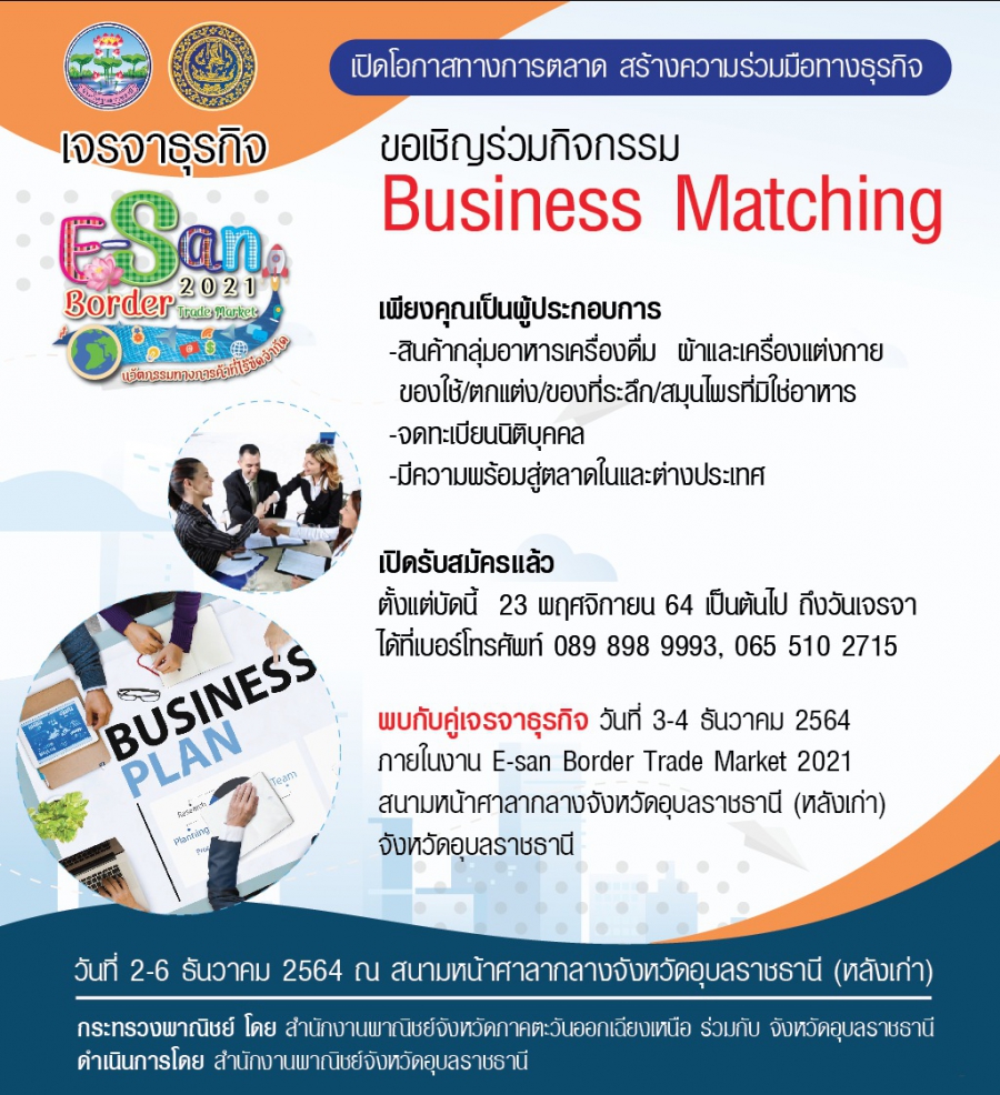 ร่วมเจรจาธุรกิจ (Business Matching) ในงาน E-SAN Border Trade Market 2021