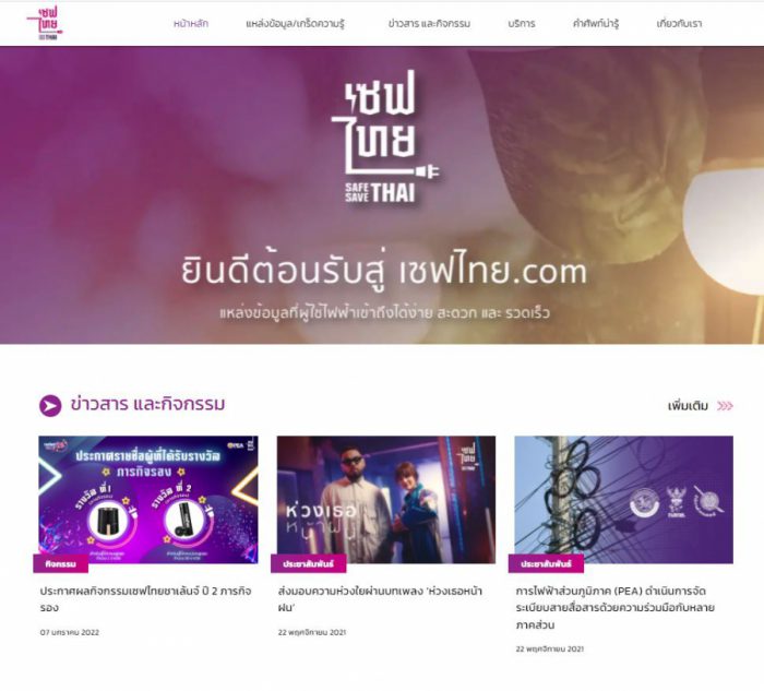 เชิญร่วมติดตามภารกิจ และผลงาน โครงการเซฟไทย แหล่งข้อมูลการใช้ไฟฟ้าอย่างปลอดภัยและประหยัด จากการไฟฟ้าส่วนภูมิภาค (PEA) ประจำปี 2564-2565