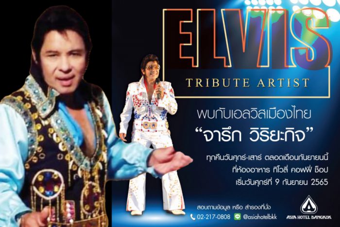 ‘จารึก วิริยะกิจ’ Elvis เมืองไทย ชวนหวนรำลึกราชาเพลงร็อก’ Elvis Presley’ ให้เหล่าบรรดาแฟนเพลงราชาเพลงร็อกในตำนาน Elvis Presley ได้หายคิดถึง…อีกครั้งหลังจากห่างหายไปถุึง2ปี จารึกก็กลับมาสร้างความสุขด้วยเสียงเพลงอีกครั้งที่ห้องอาหารทิโวลี่ คอฟฟี่ ช๊อป ชั้นG ที่โรงแรมเอเชีย กรุงเทพ เริ่มศุกร์ที่ 9 กันยายน 2565 ร้องทุกวันศุกร์กับเสาร์ของเดือนกันยายน2565