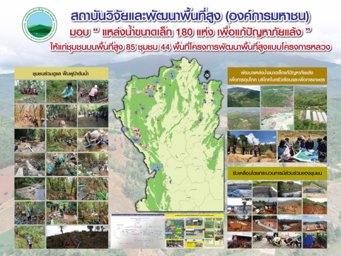 ตลอดหลายปีที่ผ่านมาการบริหารจัดการระบบน้ำบนพื้นที่สูง เพื่อการเกษตรที่ยั่งยืน ถือว่ามีความท้าทายเป็นอย่างมาก จากสภาพความเป็นอยู่ของเกษตรกรในพื้นที่ส่วนใหญ่มุ่งปลูกพืชเชิงเดี่ยว และอาศัยน้ำในช่วงฤดูฝนทำให้พื้นที่ประสบปัญหาขาดแคลนน้ำอย่างรุนแรง จนกระทั่งสถาบันวิจัยและพัฒนาพื้นที่สูง (สวพส.) นำโครงการเข้าไปช่วยเหลือและสนับสนุนที่เน้นการทำงานแบบมีส่วนร่วมนับตั้งแต่ปี 2557
