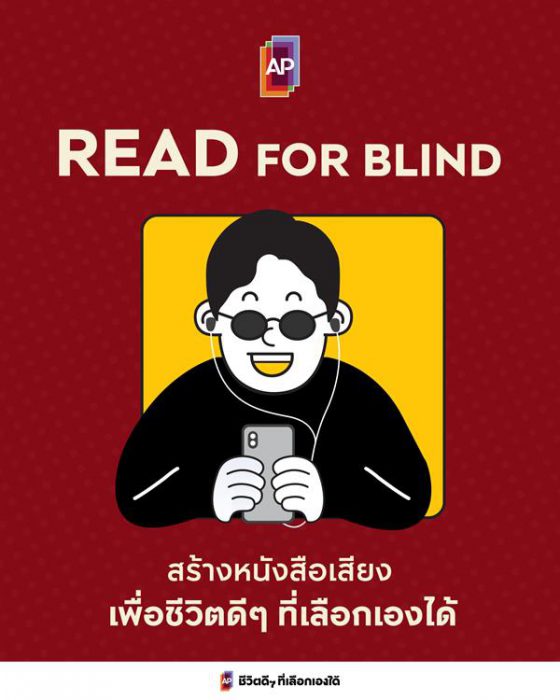 บมจ. เอพี ไทยแลนด์ ร่วมสนับสนุนสังคมและส่งเสริมการพัฒนาศักยภาพ ‘คน’ อย่างต่อเนื่อง จัดกิจกรรม “READ FOR BLIND ผลิตหนังสือเสียงให้กับผู้พิการ ทางสายตา” ผ่านแอปพลิเคชัน เพื่อเปิดกว้างโลกแห่งการเรียนรู้ เสริมคุณภาพชีวิตของผู้พิการ ให้ทุกคนมีชีวิตดีๆ ที่เลือกเองได้ไปด้วยกัน ซึ่งปัจจุบัน เอพี ไทยแลนด์ มีการจ้างพนักงานที่เป็น ผู้พิการทางสายตาเข้าทำงานมากถึง 28 ท่าน ถือเป็นอีกหนึ่งภารกิจเพื่อเสริมคุณภาพชีวิตของ ผู้พิการ พร้อมกันนี้ นางสาวทิพวรรณ ศิริคูณ ผู้ช่วยกรรมการผู้อำนวยการ สายงานทรัพยากรบุคคล บมจ. เอพี ไทยแลนด์ ได้เป็นตัวแทนมอบหนังสือเสียงและอุปกรณ์สำหรับผลิตหนังสือเสียง ให้กับ “โครงการ Daisy Thailand Project – ห้องสมุดคนตาบอดและผู้พิการทางสื่อสิ่งพิมพ์แห่งชาติ” โดยมี นายกิติพงศ์ สุทธิ ผู้อำนวยการห้องสมุดคนตาบอดและผู้พิการทางสื่อสิ่งพิมพ์แห่งชาติ เป็นผู้รับมอบ