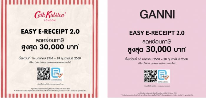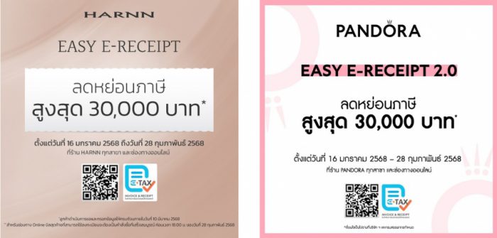 กรุงเทพฯ – 16 มกราคม 2568 บริษัท ธนจิรา รีเทล คอร์ปอเรชั่น จำกัด (มหาชน) หรือ “TAN” ตอกย้ำความเป็นผู้นำด้านธุรกิจค้าปลีกในยุคดิจิทัล ด้วยการเข้าร่วมโครงการ Easy E-Receipt 2.0 ตามนโยบายภาครัฐ สนับสนุนการเปลี่ยนแปลงสู่สังคมไร้กระดาษ พร้อมสิทธิประโยชน์สำหรับลูกค้าทุกท่าน ลดหย่อนภาษีได้สูงสุดถึง 30,000 บาท เมื่อซื้อสินค้าในเครือธนจิรา ได้แก่ Pandora, Marimekko, Cath Kidston, GANNI, HARNN และ UNITED ARROWS ตั้งแต่วันที่ 16 มกราคม – 28 กุมภาพันธ์ 2568