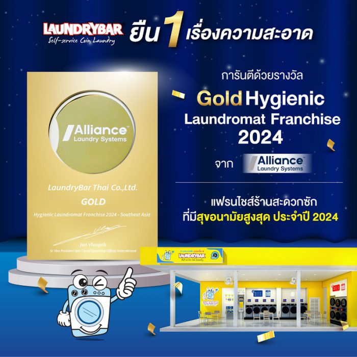 ลอนดรี้บาร์ ร้านสะดวกซัก คว้ารางวัล “Hygienic Laundromat Franchise 2024″ ตอกย้ำความเป็นแฟรนไชส์คุณภาพที่มีมาตรฐานสุขอนามัยสูงสุดในปี 2024 พร้อมเดินหน้าเปิดตัว “LaundryBar Lite” โมเดลใหม่ที่ช่วยให้ผู้ลงทุนรายย่อยเป็นเจ้าของธุรกิจร้านสะดวกซักได้ง่ายขึ้น