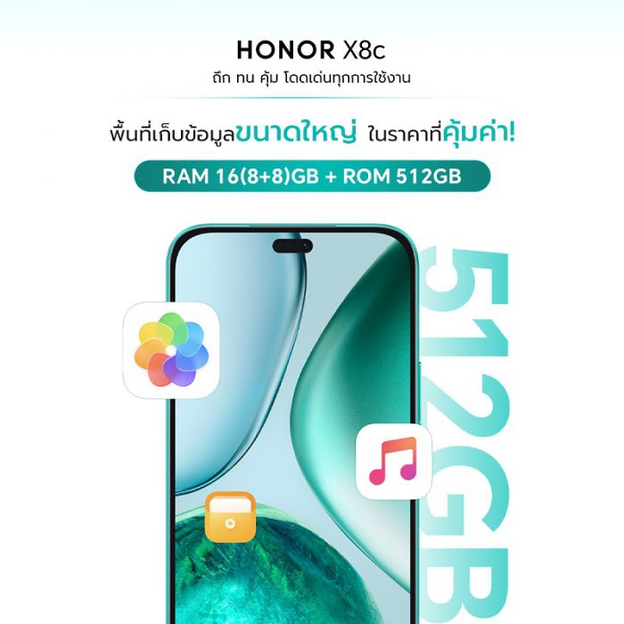 19 มีนาคม 2568, กรุงเทพฯ – ออเนอร์ (HONOR) ผู้ให้บริการอุปกรณ์อัจฉริยะชั้นนำระดับโลก เตรียมเปิดตัวสมาร์ตโฟนรุ่นใหม่ล่าสุด HONOR X8c ที่มาพร้อมฟีเจอร์สุดล้ำ โดดเด่นทั้งด้านการถ่ายภาพ ความจุขนาดใหญ่ และดีไซน์สุดบางเบา ตอบโจทย์ทุกไลฟ์สไตล์ของผู้ใช้งาน สมาร์ตโฟนรุ่นนี้มาพร้อมกล้องหลังความละเอียดสูง 108MP พร้อม Ultra-clear Night Photograph รองรับการถ่ายภาพกลางคืนอย่างคมชัด และกล้องหน้าเซลฟี่ 50MP เสริมด้วย Selfie Light ช่วยให้การถ่ายเซลฟี่สวยงามในทุกสภาพแสง อีกทั้งยังมี AI Eraser เทคโนโลยีลบวัตถุที่ไม่ต้องการออกจากภาพได้ง่าย ๆ เพียงปลายนิ้ว ตลอดจนพื้นที่การจัดเก็บเต็มพิกัด ความจุขนาดใหญ่พิเศษ 512GB สำหรับ HONOR X8c จะเปิดราคาในวันที่ 21 มีนาคม 2568 โดยวางจำหน่ายผ่านช่องทางออนไลน์เท่านั้น พร้อมโปรโมชันพิเศษสำหรับลูกค้าที่สั่งซื้อช่วงเปิดตัว