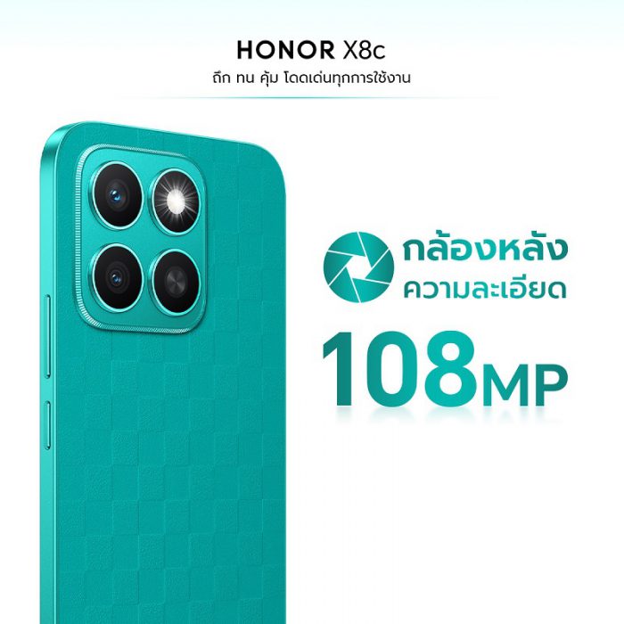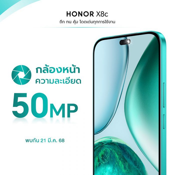เตรียมเปิดตัว HONOR X8c สมาร์ตโฟน ถึก ทน คุ้ม โดดเด่นทุกการใช้งาน มาพร้อมกล้อง 108MP ความจุเต็มพิกัด และฟีเจอร์ AI สุดล้ำ เริ่มขาย 21 มีนาคมนี้