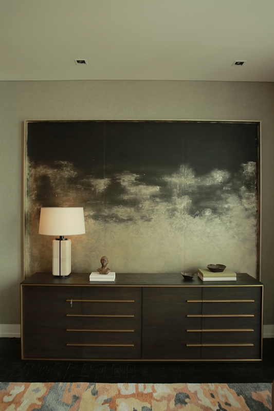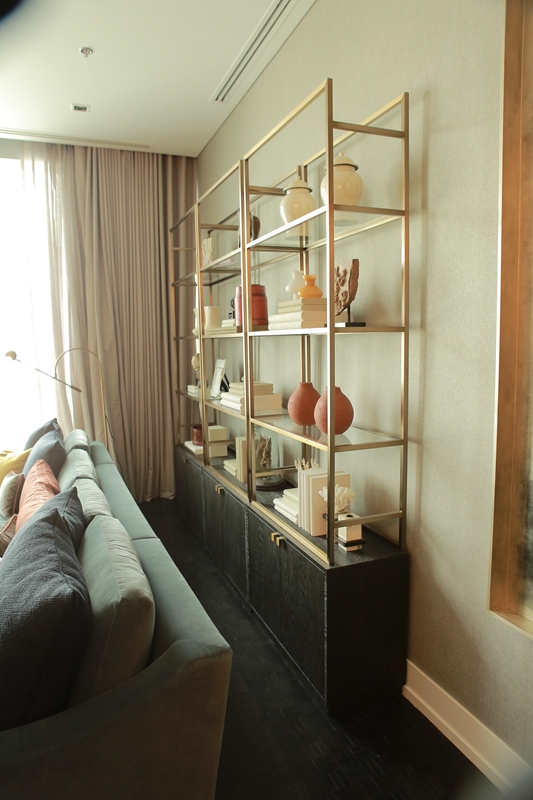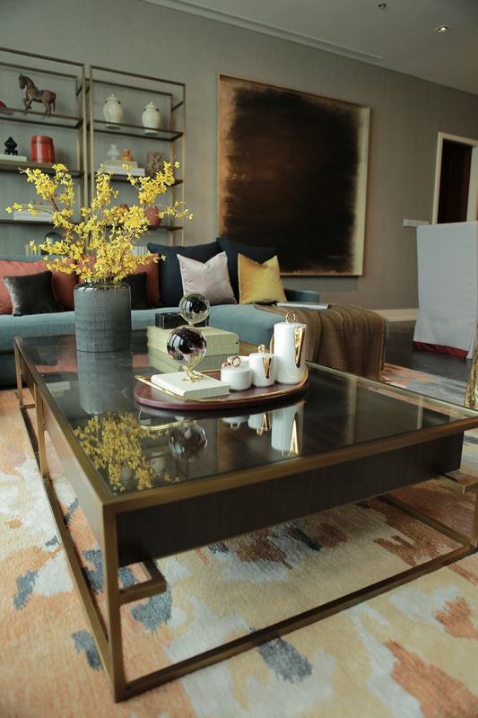 ต่อมาที่ โต๊ะห้องนั่งเล่น โต๊ะคอนโซล และชั้นวางของ เฟอร์นิเจอร์กลุ่มนี้มักถูกจัดวางให้อยู่ในระยะใกล้เคียงกัน จึงควรเลือกให้เป็นชิ้นที่มีดีไซน์เดียวกัน โดยความเรียบหรูนั้นสามารถเลือกได้จากชิ้นที่มีการผสมผสานของวัสดุสองชนิดเข้าด้วยกัน อาทิ ไม้กับทองเหลือง (Brass) รวมถึงเรื่องขนาดที่ต้องดูให้เหมาะสมกับพื้นที่ด้วยเช่นกัน