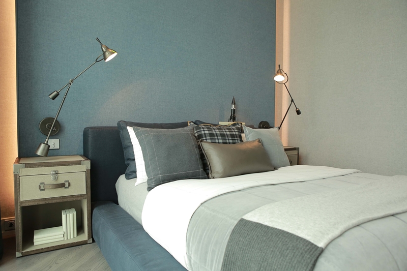 สำหรับห้องนอน เตียงนอน ควรเลือกจากดีไซน์ที่คลาสสิกเหนือกาลเวลา สามารถแมทช์เข้ากับสีห้องและของตกแต่งชิ้นอื่นได้ง่าย อย่าง เตียงบุหนังกระเบน (Shagreen) โทนสีเบจ แต่ควรเลือกขนาดให้เหมาะสมกับพื้นที่ในห้อง โดยเฉพาะความสูงของหัวเตียงถ้าสูงเกินไปอาจทำให้ห้องดูแคบ หรือถ้าเป็นห้องที่วอลเปเปอร์สีอ่อนอาจจะเลือกเตียงนอนที่มีโทนสีเข้มขึ้นอย่างสีน้ำเงิน โดนอาจจะเลือกดีไซน์ที่เป็นนวมบุรอบ ก็เป็นอีกหนึ่งไอเท็มที่สามารถสร้างความหรูหราได้เช่นกัน