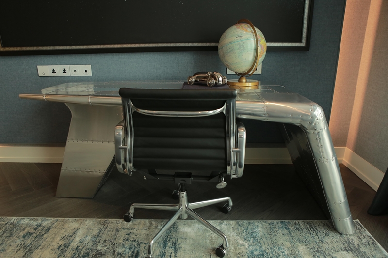 ปิดท้ายที่ โต๊ะทำงาน ที่มักจะอยู่ในมุมเล็กๆ ในห้อง โดยอาจเพิ่มความสนุกในการแต่งห้องนอนให้กับมุมนี้ด้วยการเลือกโต๊ะที่ดีไซน์มีความโดดเด่นและทันสมัย อาทิ โต๊ะดีไซน์โมเดิร์นที่ได้แรงบันดาลใจมาจากปีกเครื่องบิน