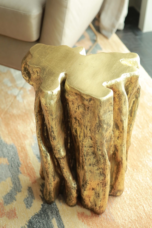 ไอเท็มต่อมา ไซด์ เทเบิ้ล (Side table) ชิ้นที่มาช่วยคอมพลีทให้ห้องนั่งเล่นดูสวยงามมากขึ้น ด้วยลูกเล่นของการใช้วัสดุเดียวกันแต่เทกซ์เจอร์ต่างกัน เมื่อถูกจัดวางอยู่ด้วยกันก็ยิ่งทำให้มุมนั้นของบ้านมีความน่าสนใจยิ่งขึ้น ซึ่งหากโต๊ะตัวกลางเลือกจากวัสดุที่เป็นไม้และทองเหลือง (Brass) ตัวไซด์ เทเบิ้ล (Side table) ก็อาจจะเลือกจากวัสดุที่ทำจากทองเหลือง (Brass) ทั้งชิ้น