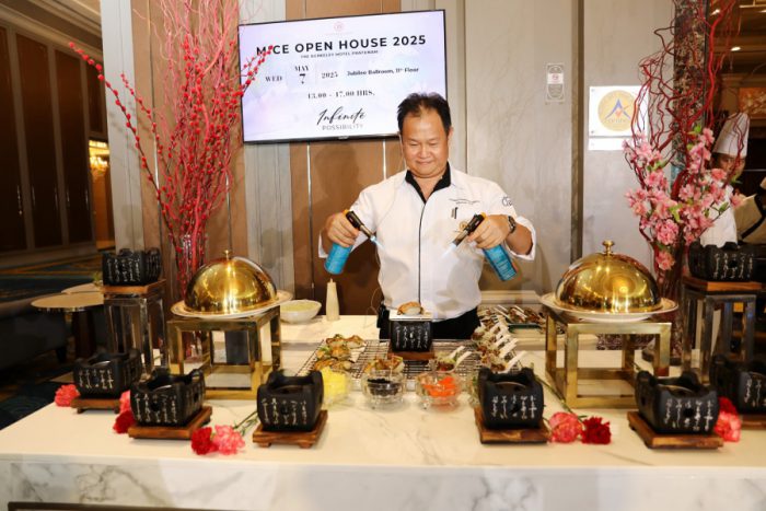 อีกหนึ่งไฮไลต์ของงานคือการสัมผัสประสบการณ์การให้บริการอาหารระดับพรีเมียม โดยเชฟประจำโรงแรมฯ ได้รังสรรค์เมนูสุดสร้างสรรค์ที่สะท้อนความใส่ใจในทุกรายละเอียดของการจัดงานตามมาตรฐานระดับสากล