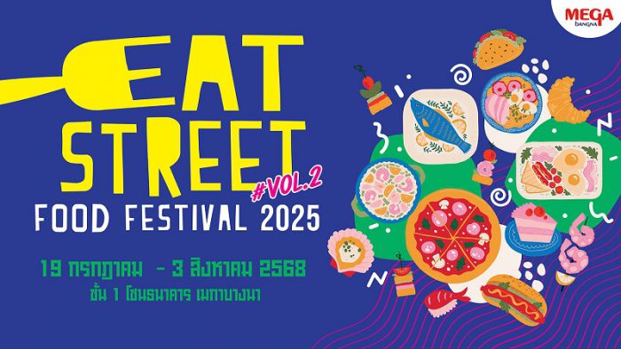 เมกาบางนา ตอกย้ำแลนด์มาร์กสายกิน จัดใหญ่งาน “EAT STREET FOOD FESTIVAL 2025 VOL.2” เสิร์ฟสตรีทฟู้ดอร่อยเกินต้านจาก 60 ร้านดังวันที่ 19 ก.ค. – 3 ส.ค. 68 ที่ศูนย์การค้าเมกาบางนา