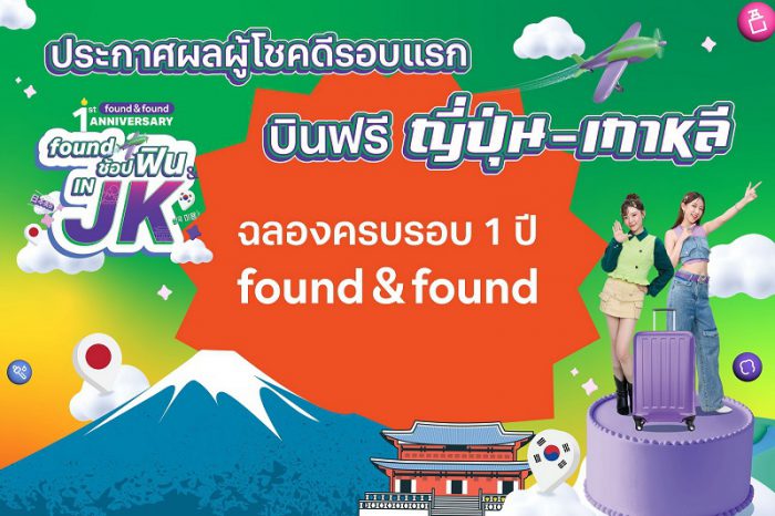 “found ช้อปฟิน IN JK” ประกาศผลผู้โชคดีรอบแรก ลุ้นฟินบินญี่ปุ่น–เกาหลี ฉลองครบรอบ 1 ปี found & found สร้างโมเมนต์ความสุขให้สายช้อป