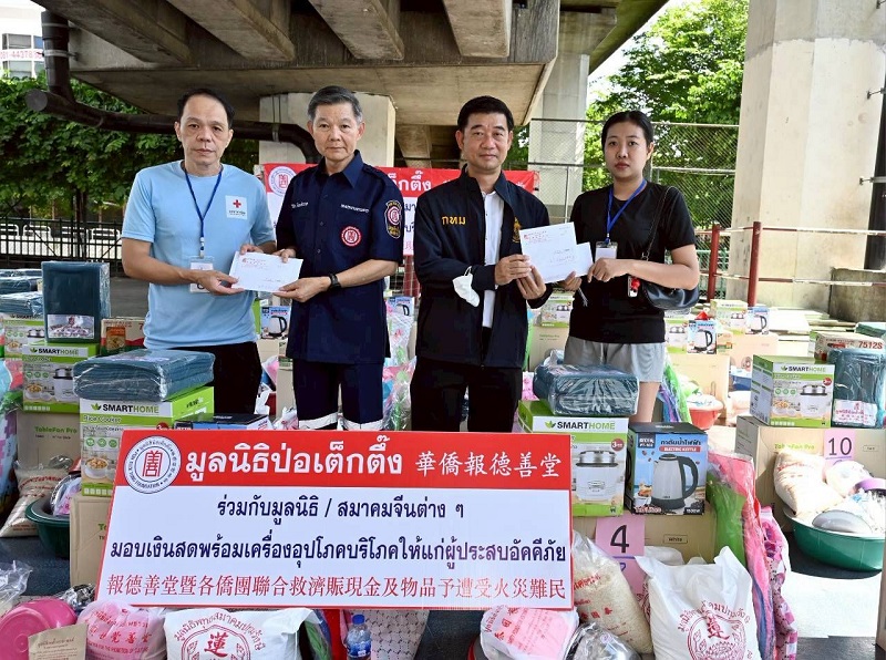 มูลนิธิป่อเต็กตึ๊ง มอบเงินช่วยเหลือพร้อมเครื่องอุปโภคบริโภค บรรเทาทุกข์ผู้ประสบอัคคีภัยชุมชนบ้านครัวใต้ เขตปทุมวัน กรุงเทพฯ