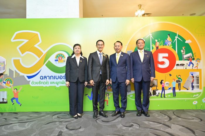 กระทรวงพลังงาน กรมพัฒนาพลังงานทดแทนและอนุรักษ์พลังงาน (พพ.) และการไฟฟ้าฝ่ายผลิตแห่งประเทศไทย (กฟผ.) จัดงาน “ครบรอบ 30 ปี โครงการฉลากประหยัดไฟฟ้าเบอร์ 5 ด้วยรัก(ษ์) และผูกพัน” โดยมี ดร.ประเสริฐ สินสุขประเสริฐ ปลัดกระทรวงพลังงาน เป็นประธานเปิดงาน พร้อมด้วยผู้บริหารระดับสูงและพันธมิตรโครงการเข้าร่วมอย่างคับคั่ง ณ ห้องวิภาวดีบอลรูม โรงแรมเซ็นทารา แกรนด์ เซ็นทรัลพลาซา ลาดพร้าว กรุงเทพฯ