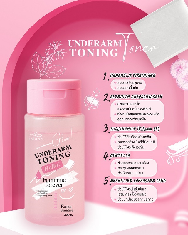 แต่ถ้าสาว ๆ อยากโชว์ผิวใต้วงแขนแบบมั่นใจไม่กลัวโป๊ะ ก็ต้องเคลียร์คัทปัญหาผิวกวนใจให้ตรงจุด โดยเฉพาะรอยดำคล้ำ ตุ่มหนังไก่ และกลิ่นตัว ที่คอยวนลูปแย่งซีนให้รู้สึกเสียเซลฟ์อยู่เสมอ แม้ปัญหานี้ดูเหมือนจะแก้ยากแต่แก้ได้ ถึงเวลาเปิดไฟใส่ฟิลเตอร์ให้ใต้วงแขนสว่างกระจ่างใส โชว์งานผิวปั๊วปังแบบไม่ต้องง้อเลเซอร์ ด้วยผลิตภัณฑ์ลดเหงื่อระงับกลิ่นกาย “ไอบลองก์ อันเดอร์อาร์ม โทนนิ่ง (iblanc Underarm Toning)” โทนเนอร์ที่ถูกออกแบบมาให้มีเนื้อสัมผัสบางเบา ซึมไว ไม่เหนียวเหนอะหนะ