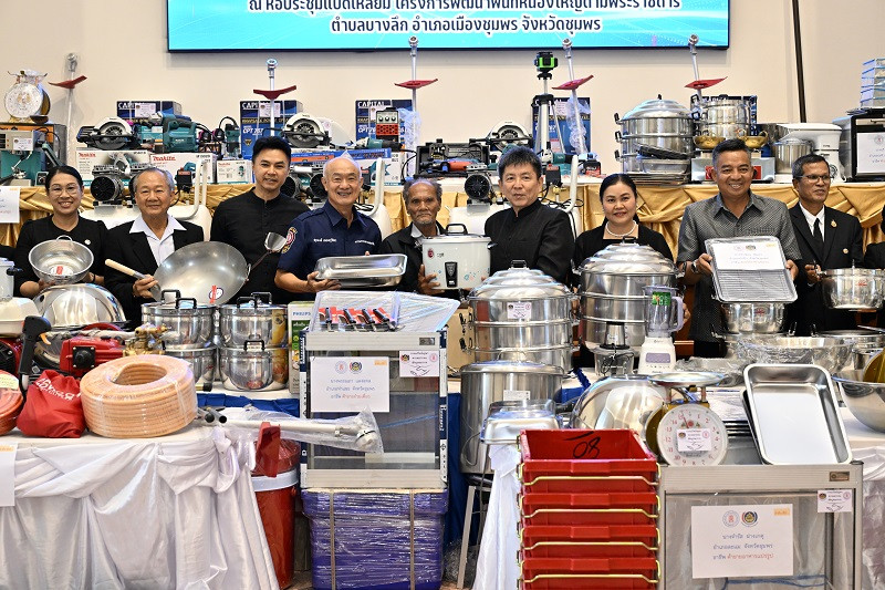 มูลนิธิป่อเต็กตึ๊ง เดินสายสร้างอาชีพ สร้างชีวิตอย่างยั่งยืนต่อเนื่อง มอบอุปกรณ์ประกอบอาชีพ ให้แก่ครัวเรือนยากจนในพื้นที่จังหวัดชุมพร ณ หอประชุมแปดเหลี่ยม โครงการพัฒนาพื้นที่หนองใหญ่ตามพระราชดำริ จังหวัดชุมพร