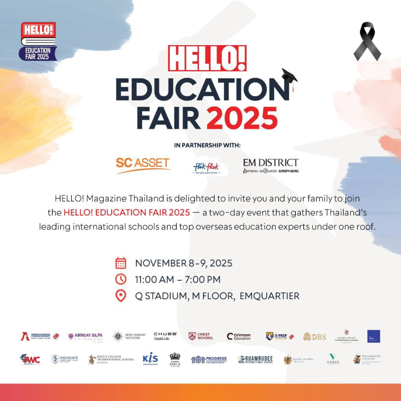HELLO! EDUCATION FAIR 2025 งานแนะแนวการศึกษานานาชาติครั้งใหญ่ รวมกว่า 20 โรงเรียนนานาชาติชั้นนำ และผู้เชี่ยวชาญด้านการศึกษาต่อต่างประเทศ ครบจบในงานเดียว!