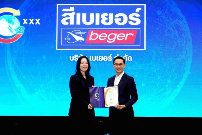 ในโอกาสเดียวกันนี้ ดร.วรวัฒน์ ชัยยศบูรณะ ตัวแทนผู้บริหารเบเยอร์ ยังเข้ารับประกาศนียบัตรรับรอง Carbon Footprint of Product (CFP) ครอบคลุมสินค้า 177 SKU ซึ่งประเมินตามแนวทางการคำนวณของ TGO (แหล่งอ้างอิง: TGO – Carbon Footprint of Product Guidelines) ทำให้เบเยอร์เป็นหนึ่งในบริษัทสีที่มีจำนวนผลิตภัณฑ์ได้รับการรับรองมากที่สุดในประเทศ