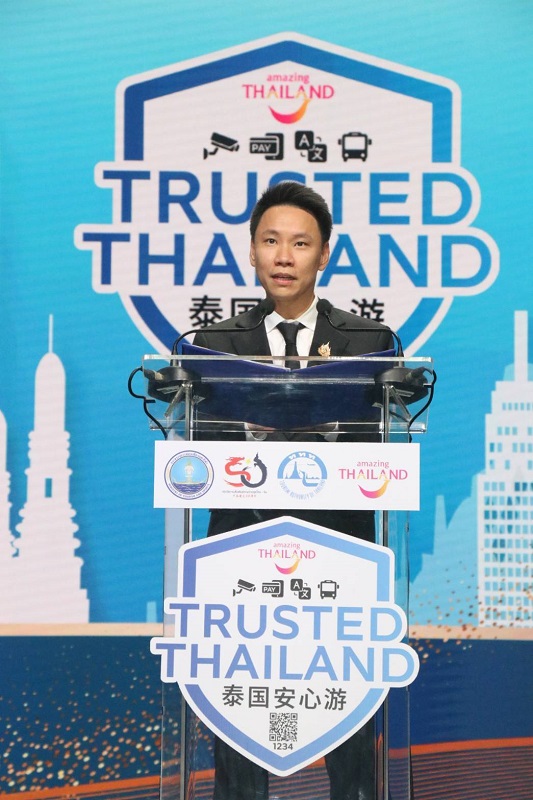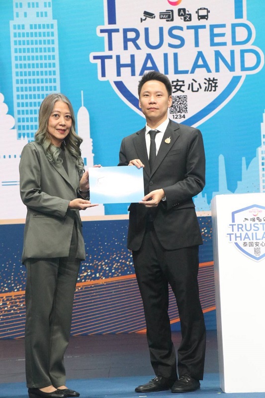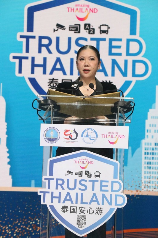 นายอรรถกร ศิริลัทธยากร รัฐมนตรีว่าการกระทรวงการท่องเที่ยวและกีฬา กล่าวว่า ตลอด 10 เดือนที่ผ่านมาของปี 2568 ประเทศไทยต้อนรับนักท่องเที่ยวต่างชาติรวมประมาณ 26.7 ล้านคน สำหรับนักท่องเที่ยวชาวจีนมีจำนวน 3.7 ล้านคน คิดเป็นสัดส่วนประมาณ 15% ดังนั้น รัฐบาลจึงได้ดำเนินมาตรการสร้างความมั่นใจในการเดินทางให้นักท่องเที่ยวอย่างต่อเนื่องในทุกมิติ ไม่ว่าจะเป็นการยกระดับมาตรฐานสถานที่ท่องเที่ยว การประสานความร่วมมือกับหน่วยงานด้านความมั่นคง การสื่อสารข้อมูลที่ถูกต้อง รวมถึงการอำนวยความสะดวกแก่นักท่องเที่ยว ด้วยโครงการ “Trusted Thailand” ที่ดำเนินการโดย ททท. เพื่อเสริมความเชื่อมั่นให้กับนักท่องเที่ยวในการเลือกสถานประกอบการโรงแรมที่พัก ร้านอาหาร และแหล่งท่องเที่ยว ผ่านตราสัญลักษณ์ Trusted Thailand ที่เปรียบเสมือนสัญลักษณ์ที่สร้างความมั่นใจในด้านความปลอดภัยของนักท่องเที่ยวให้กลับมาเดินทางท่องเที่ยวประเทศไทยอีกครั้ง โดยเฉพาะในกลุ่มนักท่องเที่ยวจีนให้เกิดการเดินทางอย่างต่อเนื่อง