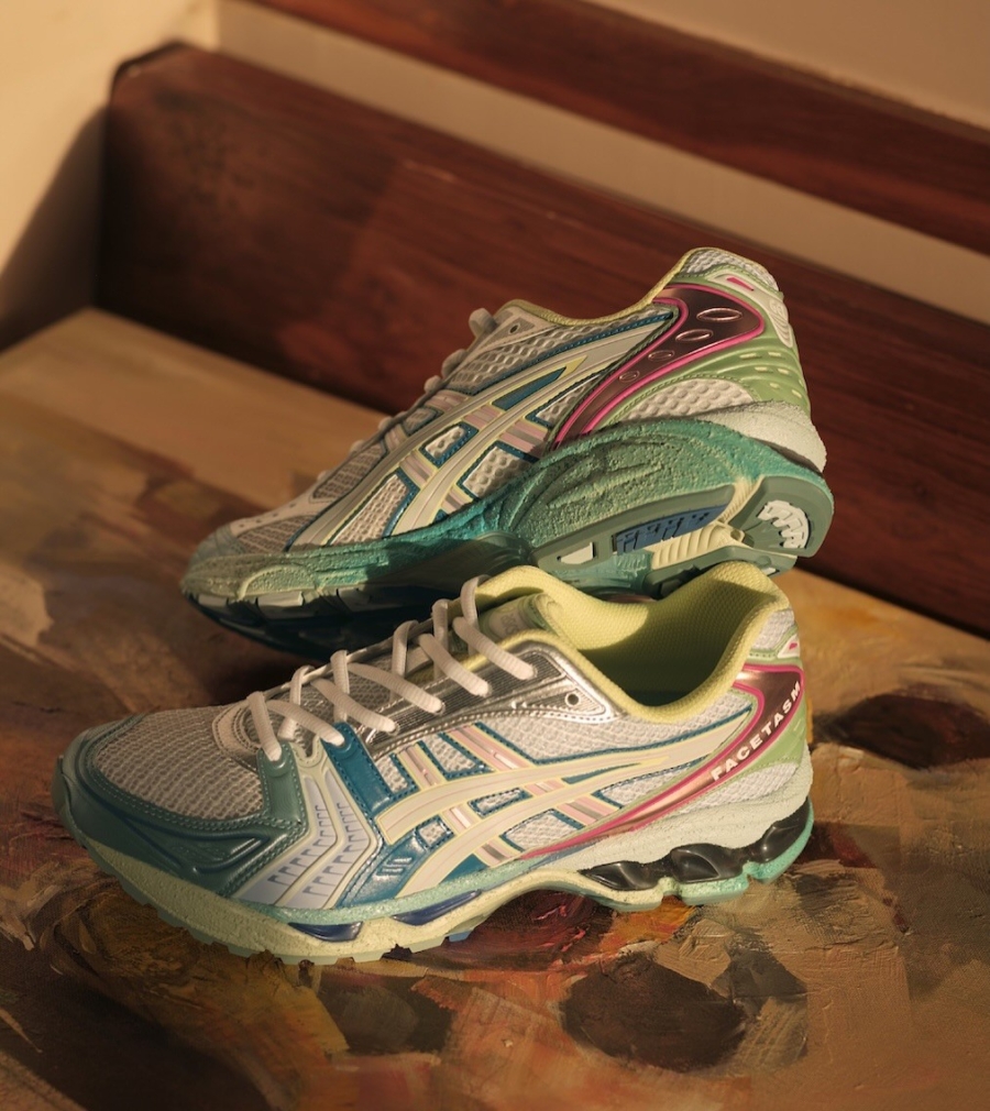 และอีกหนึ่งไฮไลต์ ASICS GEL-KAYANO™ 14 x FACETASM คอลลาบอเรชั่นสุดพิเศษกับ FACETASM แบรนด์ชื่อดังจากประเทศญี่ปุ่น ที่ถ่ายทอดแนวคิดของ Organic Beauty (ความงามตามธรรมชาติ) นำแรงบันดาลใจจากสีสันและพื้นผิวอันงดงามของธรรมชาติมาผสมผสานเข้ากับดีไซน์ร่วมสมัยของรองเท้า GEL-KAYANO™ 14 ทั้งคู่ถูกออกแบบด้วยโทนสีมากกว่า 30 เฉด เพื่อสะท้อนความงดงามขององค์ประกอบจากธรรมชาติ เช่น พืชพรรณ ดิน แสง และน้ำ ส่วนของอัปเปอร์ใช้ผ้าตาข่าย (Mesh) ที่มีการทอแตกต่างกันในส่วนปลายเท้า ด้านนอก และด้านใน เพื่อให้เกิดมิติของพื้นผิวที่แสดงออกต่างกันเมื่อมองจากมุมต่างๆ พื้นกลาง (Midsole) ถูกออกแบบด้วยโฟมที่มีพื้นผิวขรุขระ ผสมการไล่เฉดสีแบบเกรเดียนท์ เพื่อสะท้อนพื้นผิวของดินอย่างเป็นธรรมชาติ ขณะที่เทคโนโลยี GEL™ cushioning ใช้สีที่แตกต่างกันระหว่างส่วนหน้าและส้นเท้า โดยความโปร่งใสราวแก้วของ GEL™ สร้างเอฟเฟกต์ให้ดูราวกับถูกฝังอยู่ในวัสดุธรรมชาติ ช่วยขับเน้นคอนเซ็ปต์ Organic Beauty ให้เด่นชัดยิ่งขึ้น และนอกจากนี้ กล่องรองเท้า ยังออกแบบพิเศษ โดยได้รับแรงบันดาลใจจากลังไม้สีขาวแบบวินเทจ เพื่อให้ภาพรวมของผลิตภัณฑ์สะท้อนอารมณ์ของธรรมชาติอย่างสมบูรณ์แบบ