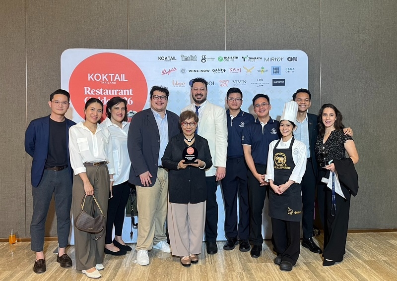 มาสเตอร์เชฟนูรอ โซ๊ะมณี สเต็ปเป้ (ที่ 5 จากซ้าย) แห่งกลุ่ม บลู เอเลเฟ่นท์ เข้ารับรางวัลเกียรติยศ “Thai Cuisine Ambassador” ในงาน Koktail Thailand Restaurant Guide Awards 2026 ณ Gaysorn Urban Resort ซึ่งจัดขึ้นเมื่อเร็ว ๆ นี้ เพื่อเชิดชูและยกย่องสุดยอดร้านอาหาร การบริการ และเชฟผู้ทรงคุณวุฒิแห่งวงการอาหารไทย
