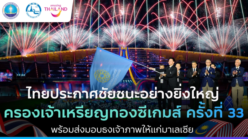 ไทยประกาศชัยชนะอย่างยิ่งใหญ่ ครองเจ้าเหรียญทองซีเกมส์ ครั้งที่ 33 พร้อมส่งมอบธงเจ้าภาพให้แก่มาเลเซีย