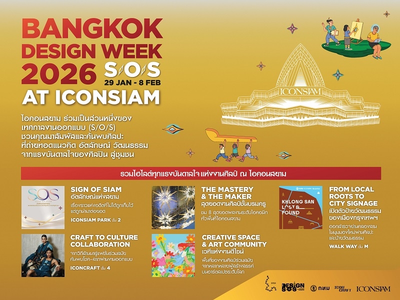 ไอคอนสยาม จับมือพันธมิตรร่วมสร้างประสบการณ์ออกแบบและความยั่งยืน ใน Bangkok Design Week 2026 ชวน “หลงเพื่อพบเจอ” เรื่องราววัฒนธรรมย่าน ผสานนิทรรศการ ศิลปะ วัฒนธรรม ในหลากหลายมิติ