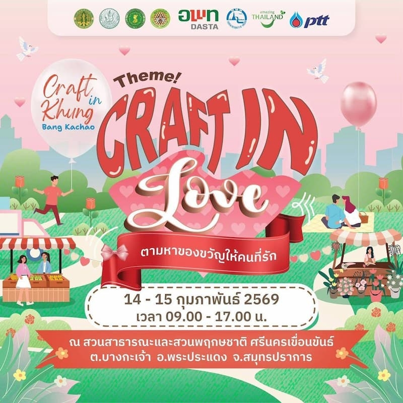 องค์การบริหารการพัฒนาพื้นที่พิเศษเพื่อการท่องเที่ยวอย่างยั่งยืน (องค์การมหาชน) หรือ อพท.โดยสำนักงานพื้นที่พิเศษเพื่อการท่องเที่ยวอย่างยั่งยืนคุ้งบางกะเจ้า (อพท.คุ้งบางกะเจ้า) ร่วมกับ การท่องเที่ยวแห่งประเทศไทย (ททท.) สำนักงานฉะเชิงเทรา และภาคีเครือข่ายพันธมิตรในพื้นที่ จัดงานเทศกาลท่องเที่ยวเชิงสร้างสรรค์ “Craft in Khung Bangkachao” ครั้งที่ 2 ในธีม “Craft in Love” ระหว่างวันที่ 14-15 กุมภาพันธ์ 2569 ณ สวนสาธารณะและสวนพฤกษชาติศรีนครเขื่อนขันธ์ จังหวัดสมุทรปราการ