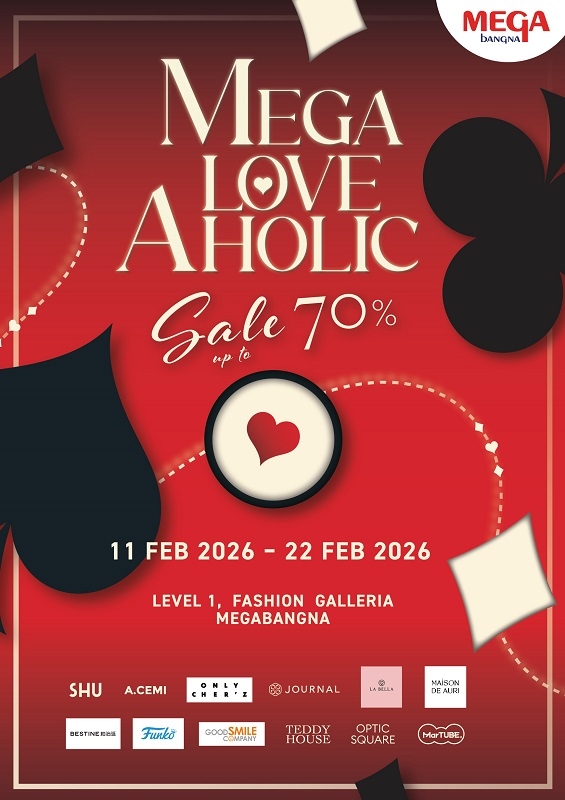 เมกาบางนา ชวนฉลองเดือนแห่งความรัก ในงาน “MEGA LOVE AHOLIC” ช้อปไอเทมแฟชั่นและไลฟ์สไตล์แทนใจ ลดสูงสุด 70% วันที่ 11 – 22 ก.พ. 69 ณ โซนแฟชั่น แกลเลอเรีย ชั้น 1 ศูนย์การค้าเมกาบางนา