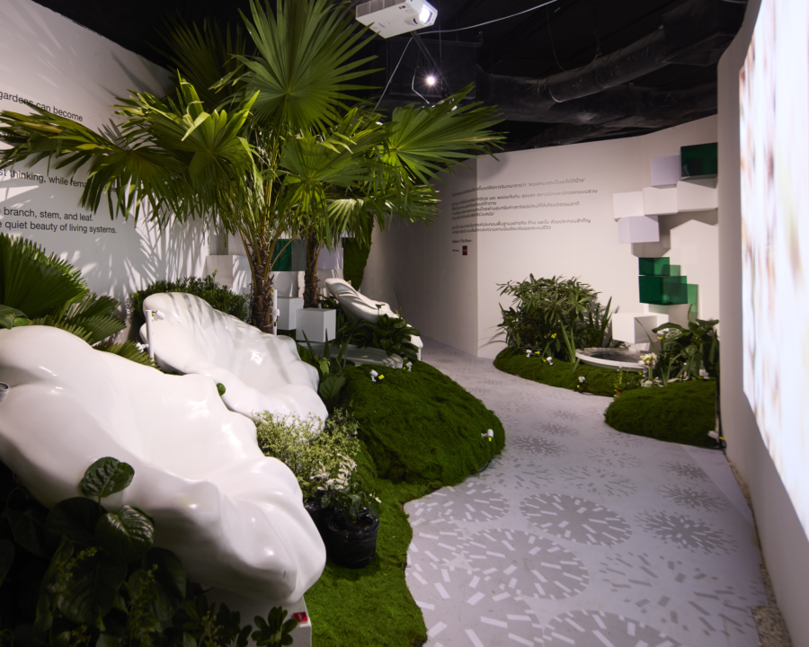 ความน่าสนใจยังไม่จบเพียงแค่นั้น การเดินทางจะพาคุณไปยังห้องที่ 4 “Garden of Memory” ผู้ชมจะถูกโอบล้อมด้วยบรรยากาศกึ่งฝันกึ่งจริง สวนที่ถูกห่อหุ้มด้วยชั้นโปร่งแสง แสงลอดผ่านอย่างอ่อนโยน สื่อถึงความทรงจำที่ค่อยๆ เลือนหาย เหลือไว้เพียงตะกอนของความสงบที่ลอยละล่องอยู่ในอากาศ ก่อนจะปิดท้ายด้วยห้องที่ 5 “Garden of Imagination” พื้นที่ปลายทางที่ผสมผสานความแปลกใหม่ของศิลปะ เทคโนโลยี และธรรมชาติเข้าด้วยกันอย่างกลมกลืน เพื่อตั้งคำถามและเปิดพื้นที่ให้ผู้ชมได้ขบคิดถึงความเป็นไปได้ใหม่ๆ ของคำว่า “สวน” ในโลกอนาคต