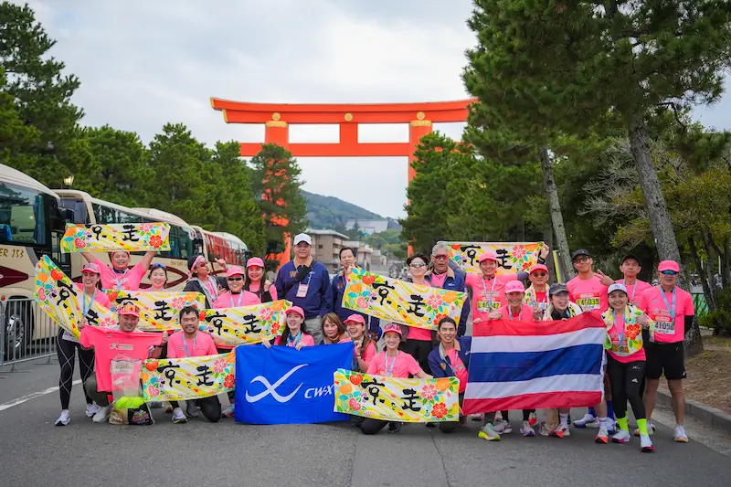 KYOTO MARATHON 2026 มีนักวิ่งจากทั่วโลกกว่า 16,000 คน เส้นทางเริ่มต้นที่สนามกีฬาทาเคบิชิเกียวโต ผ่านสถานที่สำคัญอย่างป่าไผ่อาราชิยามะ วัดทองคินคะคุจิ วัดนินนาจิ และศาลเจ้าคามิโมะ รวมถึงวิวภูเขา 5 ลูกอันเป็นเอกลักษณ์ ตลอดการแข่งขันนักวิ่งจะได้รับการดูแลด้วยอาหาร น้ำดื่ม และกำลังใจจากประชาชนและพระจากวัดนินนาจิ สร้างประสบการณ์ฟูลมาราธอนที่ผสานศิลปะ วัฒนธรรม และจิตวิญญาณของเกียวโตอย่างแท้จริง โดยหน่วยงานภาครัฐของเกียวโตจะนำรายได้จากการจัดงานไปช่วยฟื้นฟูพื้นที่ ที่ได้รับผลกระทบจากแผ่นดินไหวในญี่ปุ่น โดยเมืองเกียวโตเป็นต้นกำเนิดของแบรนด์ WACOAL และ CW-X