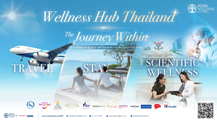 กรุงเทพฯ, ประเทศไทย – 27 กุมภาพันธ์ 2569 – BDMS Wellness Clinic ศูนย์สุขภาพเชิงป้องกันในเครือบริษัท กรุงเทพดุสิตเวชการ จำกัด (มหาชน) หรือ BDMS จับมือพันธมิตรด้าน Luxury Wellbeing มอบประสบการณ์เส้นทางการดูแลสุขภาพพิเศษภายใต้แนวคิด “Wellness Hub Thailand, The Land of Life: The Journey Within” นิยามใหม่ของการเดินทางที่ผสานการพักผ่อนระดับลักชัวรีเข้ากับการดูแลสุขภาพแบบ Scientific Wellness โดย “The Journey Within” ออกแบบมาเพื่อนักเดินทางยุคใหม่ที่ต้องการประสบการณ์การดูแลสุขภาพในขณะที่ท่องเที่ยว ทั้งทางร่างกาย จิตใจ และสมดุลภายใน ผ่าน Signature Journey Offerings โปรแกรมดูแลสุขภาพเฉพาะบุคคลจาก 5 คลินิกหลักของ BDMS Wellness Clinic ตั้งแต่คลินิกดูแลสุขภาพเชิงป้องกันและฟื้นฟู, คลินิกสร้างเสริมและฟื้นฟูระบบกล้ามเนื้อและกระดูก, คลินิกทันตกรรม, คลินิกรักษาผู้มีบุตรยาก และส่งเสริมสุขภาพสตรี และ คลินิกผิวพรรณ ความงามและสุขภาพเส้นผม