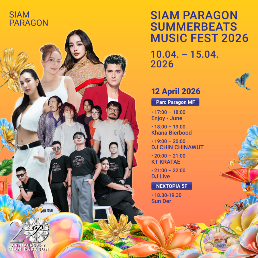 ร่วมขยับบีทความมันส์ของซัมเมอร์ไปกับ “SIAM PARAGON SUMMERBEATS MUSIC FEST 2026” ที่จะพาคุณปล่อยใจไปกับทุกจังหวะดนตรีและเอเนอร์จี้ของเฟสติวัลแบบจัดเต็มตลอดทั้งงานระหว่างวันที่ 10 – 15 เมษายน 2569 นี้ ณ พาร์คพารากอน ชั้น M และเต็มอิ่มกับกิจกรรมมหาสงกรานต์แบบรักษ์โลกได้ที่ NEXTOPIA ชั้น 5 สยามพารากอน ติดตามรายละเอียดเพิ่มเติมได้ที่ Facebook และ Instagram: Siam Paragon