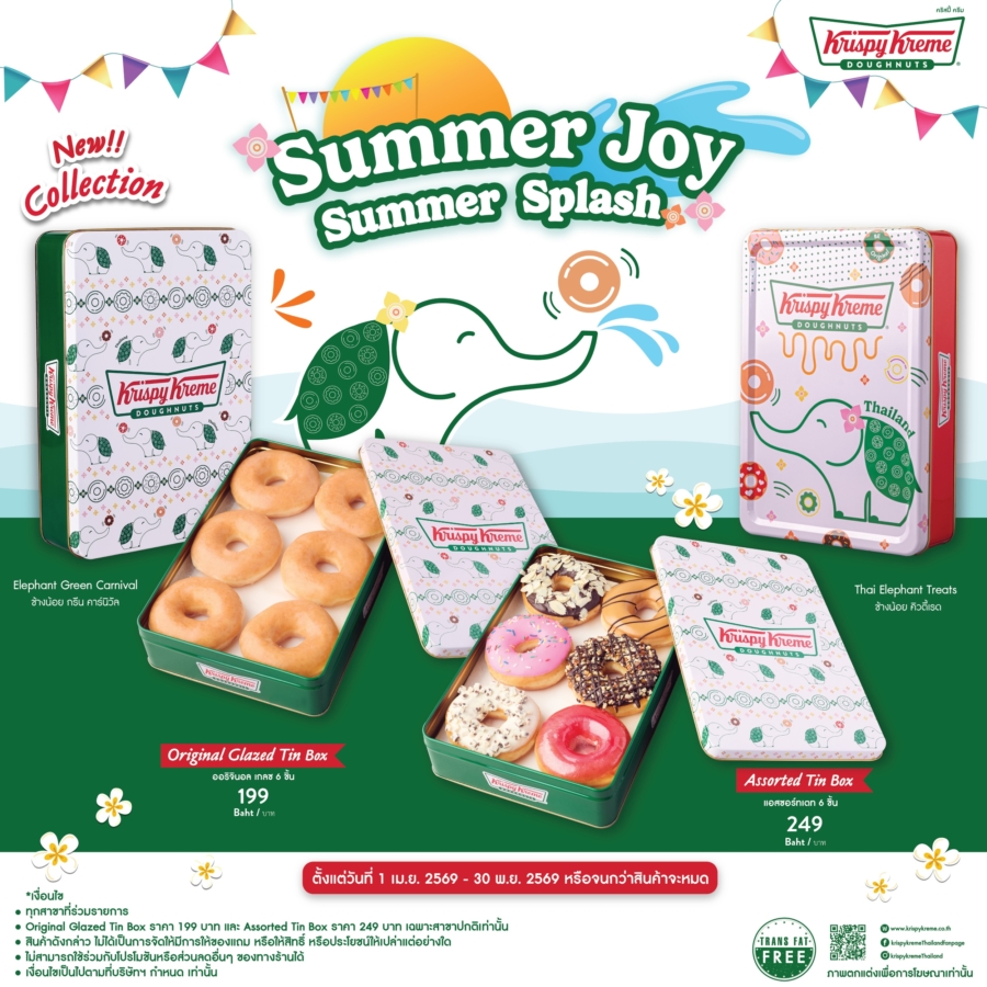 💦🌈ต้อนรับเดือนเมษาด้วยความสุขสไตล์ไทยจาก Krispy Kreme กับทินบ็อกซ์ลายใหม่จากคอลเล็กชัน “Summer Joy Summer Splash”