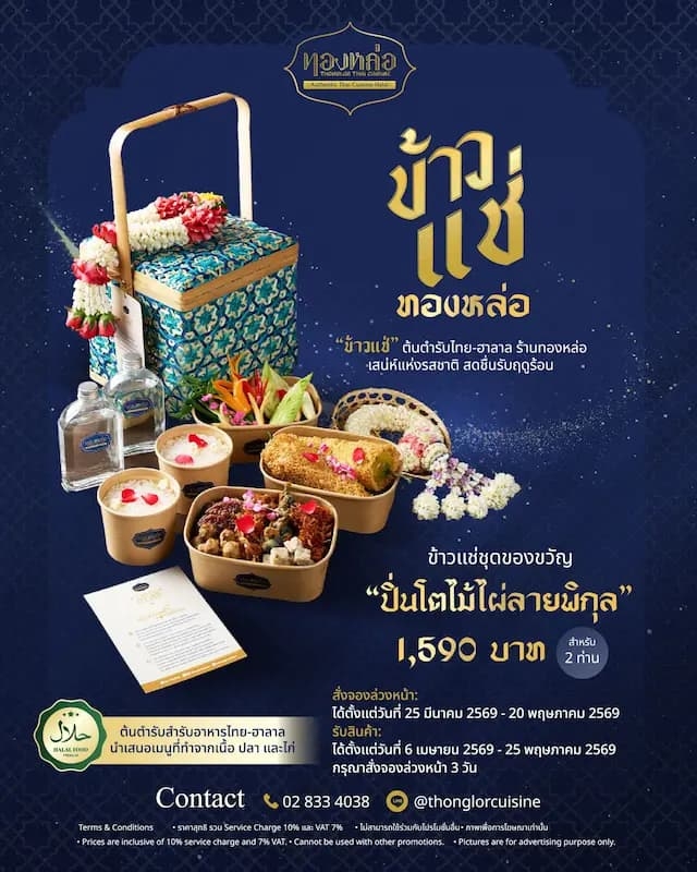 ร้านอาหารไทย “ทองหล่อ” ต้นตำรับอาหารไทยชั้นนำที่ได้รับการรับรองมาตรฐานฮาลาลหนึ่งเดียวในพื้นที่อิมแพ็ค เมืองทองธานี ต้อนรับเทศกาลสงกรานต์และฤดูร้อนด้วย “เทศกาลข้าวแช่ตำรับทองหล่อ 2026” นำเสนอเมนูคลายร้อนแบบประณีตศิลป์ ที่คงหัวใจของอาหารไทยดั้งเดิมไว้อย่างครบถ้วน โดยผ่านกระบวนการปรุงที่ถูกต้องตามหลักฮาลาล (Halal Food) 100%