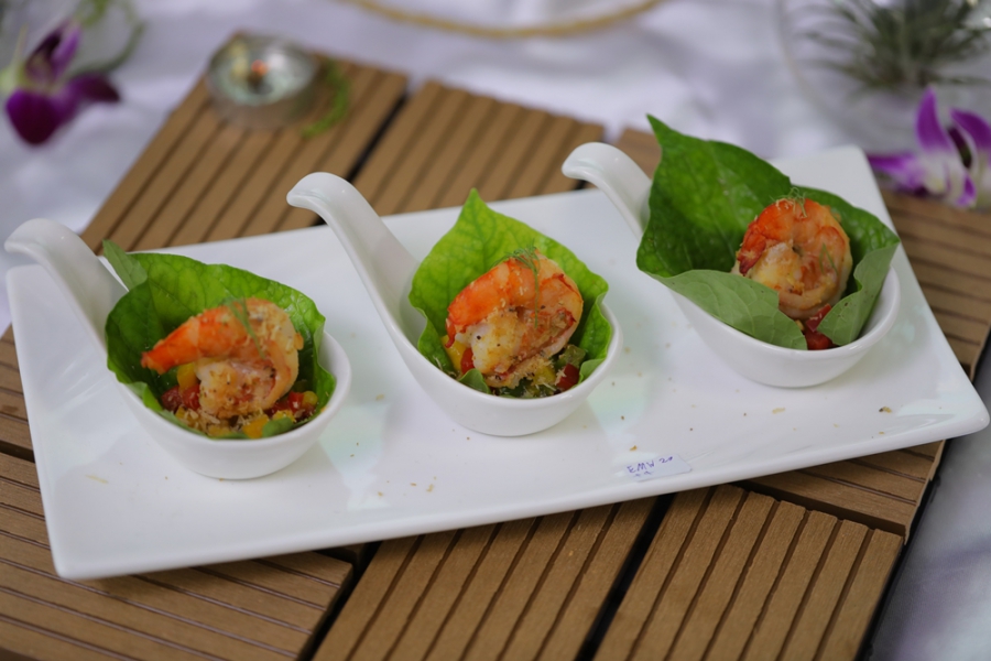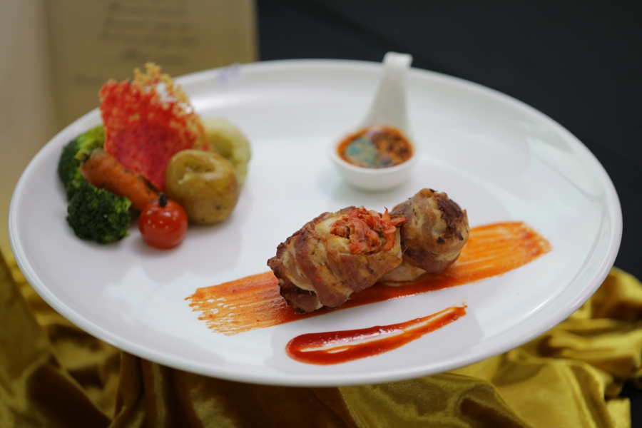 6. อาหารตะวันออกผสมผสานอาหารตะวันตกแบบฟรีสไตล์ ประเภททีมจากมหาวิทยาลัยสวนดุสิต ประกอบด้วย (1) นางสาวชนาธินาถ เกษมพันธ์ (2) นายศุภณัฐ ขันคำหมุด และ (3) นางสาวณัฐกมลณิกา เกยแก้ว
