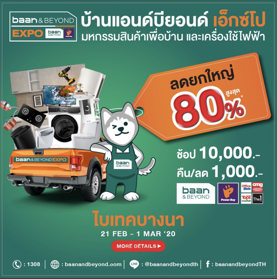 บ้านแอนด์บียอนด์ เอ็กซ์โป 2020 ที่สุดของมหกรรมสินค้าเพื่อบ้าน เครื่องใช้ไฟฟ้า อุปกรณ์สำนักงาน อุปกรณ์เครื่องเขียน สินค้าแฟชั่น และบริการครบวงจร ให้กับทุกเรื่องของบ้าน กับสินค้าคุณภาพจากแบรนด์ดังมากมาย ที่ขนมาลดยกใหญ่ จัดหนักสูงสุดถึง 80% พร้อมโปรโมชั่นสุดพิเศษ จัดเต็มเอาใจลูกค้าบ้านแอนด์บียอนด์ และคนรักบ้านโดยเฉพาะ ทั้งลดทั้งแถม ลดแล้วลดอีก ลดแล้วรับคืน คุ้มสุดคุ้ม กับโปรโมชั่นเด็ดๆ ภายในงาน งานนี้บอกได้เลยว่าคุ้มมาก โดยภายในงานจะมีไฮไลท์พิเศษต่างๆ มากมาย ตั้งแต่วันที่ 21 กุมภาพันธ์ ถึง 1 มีนาคม 2563 ณ ไบเทค บางนา
