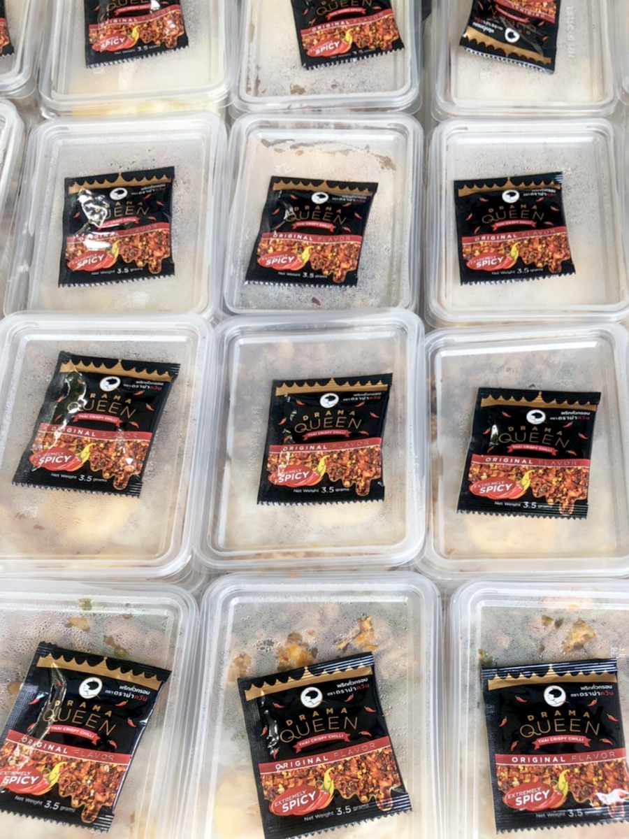 โดยในช่วงสัปดาห์ที่ผ่านมาเราได้ส่งมอบอาหารกล่องปรุงสด “คั่วกลิ้งผักสด” และ “พริกคั่วกรอบดราม่าควีน” ให้แก่ โรงพยาบาลรามาธิบดีจักรีนฤบดินทร์ คณะแพทยศาสตร์โรงพยาบาลรามาธิบดี มหาวิทยาลัยมหิดล, โรงพยาบาลรามาธิบดี, โรงพยาบาลจุฬาลงกรณ์ สภากาชาดไทย, โรงพยาบาลราชวิถี แล้ว และยังได้ติดต่อเพื่อมอบให้แก่ โรงพยาบาลพระมงกุฎเกล้า, สถาบันบำราศนราดูร, โรงพยาบาลธรรมศาสตร์รังสิต และ โรงพยาบาลสนามธรรมศาสตร์,, ทางคั่วกลิ้งผักสดได้มอบข้าวกล่องไปแล้วจำนวนทั้งสิ้น 3,500 กล่อง และดราม่าควีนได้มอบพริกคั่วกรอบไปแล้วกว่า 10,000 ซอง ทั้งนี้ ได้จัดเตรียมพริกคั่วกรอบไว้เดือนละ 50,000 ซองเพื่อมอบสมทบให้แก่ผู้สนใจที่ติดต่อเข้ามาที่ Line ID @Dramaqueenchilli