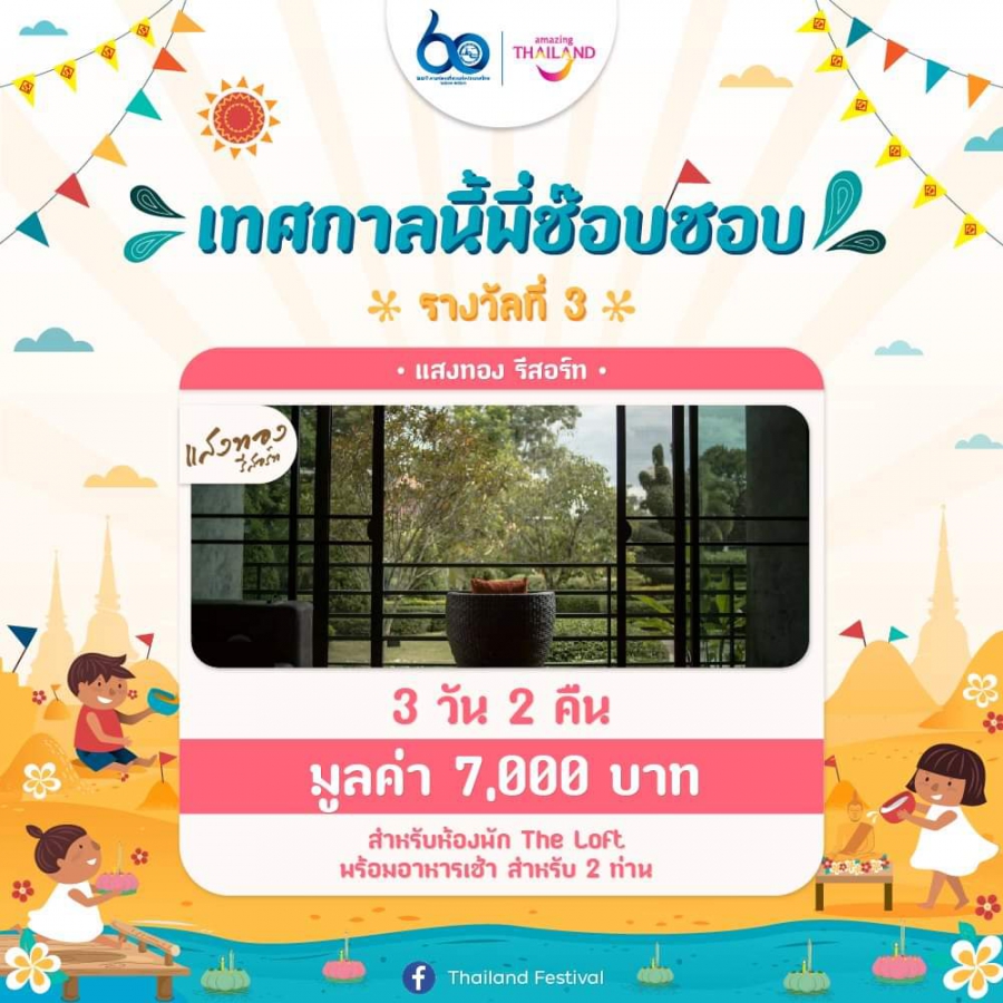 ง่ายๆ เพียงแค่แชร์กิจกรรมเทศกาล หรืองานประเพณีในดวงใจ ไม่ว่าจะเคยไป หรืออยากจะไป ให้เพื่อนๆ หรือผู้ที่ติดตามในเฟซบุ๊คส่วนตัว ก็ลุ้นรับแพ็คเกจที่พักสุดพิเศษจากโครงการได้ทันที